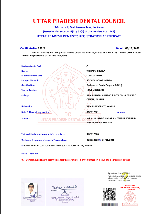 Yashasvi Dental Care features a unique combination of personalized patient care, cutting-edge technology, and a commitment to excellence. Our team, led by Dr. Yashasvi Shukla, cares for the health and satisfaction of each patient and creates individualized treatment plans that address their diverse dental needs with precision and compassion. We are at the forefront of dental innovation, using state-of-the-art equipment and advanced techniques to ensure optimal results and a seamless experience. Beyond our clinical expertise, we maintain a warm, welcoming environment where every visit is delivered with genuine care and attention to detail. At Yashasvi Dental Care, we don’t just treat smiles. We foster relationships and strengthen our community through comprehensive dental care focused on your oral health and overall well-being.
